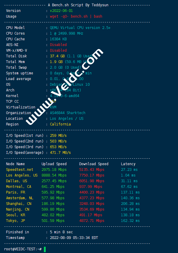 Sharktech给很多用户的感受就是主要销售独立服务器的,这确实没错,这家成立于2003年的老牌商家,主要经营美国洛杉矶、丹佛、芝加哥和荷兰阿姆斯特丹的数据中心,提供高达100Gbps的DDOS保护服务,其虚拟服务器也包含了DDOS保护,可阻止各种形式和规模的DDOS攻击,而且提供免费的Windows系统,这在国外商家来说真的不多见。前面我们介绍了Sharktech的VPS虚拟服务器购买和使用教程,本文我们将对Sharktech的美国洛杉矶VPS进行测评,测评机器就是最低配这款,下面分享下本次测评结果。