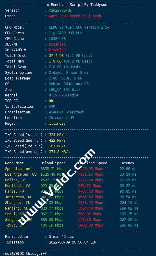 前面我们测评了Sharktech的美国洛杉矶数据中心VPS,详情查看:Sharktech:美国洛杉矶VPS最新测评,速度、延迟、路由追踪、性能等数据分享,本文我们将对Sharktech的美国芝加哥VPS进行测评,下面分享下本次测评结果。