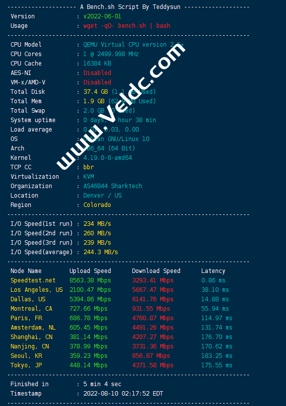 前面我们相继测评了Sharktech的美国洛杉矶和芝加哥数据中心VPS,本文我们将对Sharktech的美国丹佛VPS进行测评,下面分享下本次测评结果。