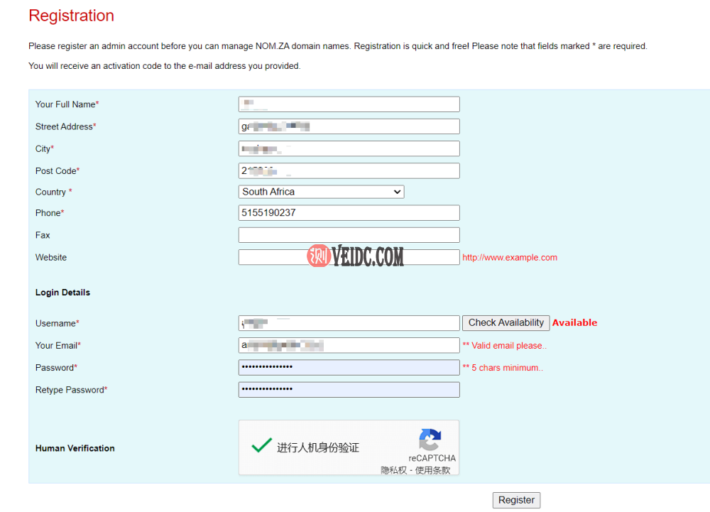 - 可以使用真实地址注册。使用国内的地址和信息也可以成功注册账号。尽管Nom.za主要是为了服务南非国民。