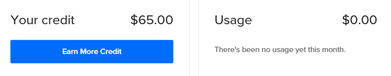 然后你就会惊喜地发现账户里有65刀啦(5刀PayPal+10刀新用户赠送+50刀GitHub学生包) a