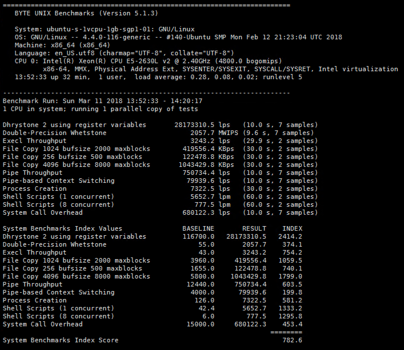 这里我跑了两个测试脚本,UnixBench测运算能力、SpeedBench做综合测试(网络、硬盘IO等)