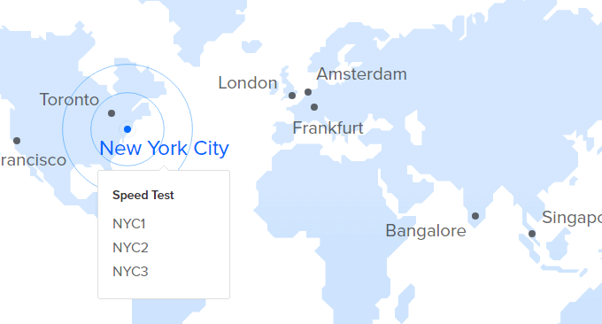 DigitalOcean目前有纽约:NYC1、NYC2、NYC3,旧金山:SFO1,阿姆斯特丹:AMS1、AMS2、AMS3,新加坡:SGP1,伦敦:LON1,印度:BLR1等共计九个机房。前面的测试发现DigitalOcean的机房带宽给得非常充足,不足之处就是这些节点在国内访问都比较慢,线路优化不好。