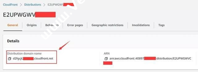 6、你在面板上看到为你分配的*.cloudfront.net域名,这也是你后续添加自定义域名所要指向的CNAME值。就是将域名的cname设置成这个域名即可。