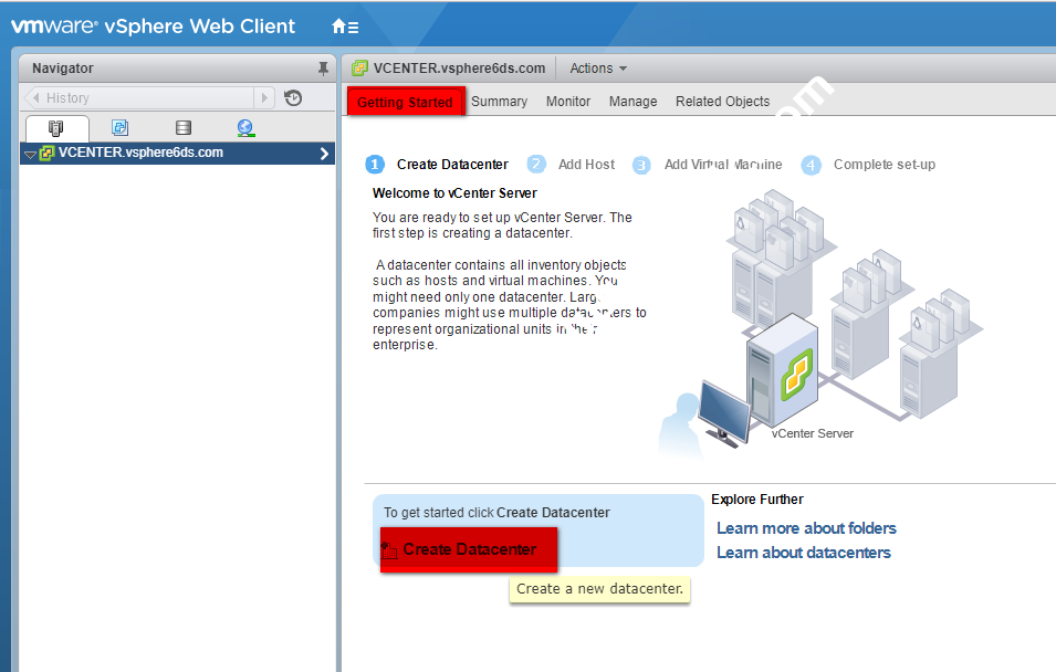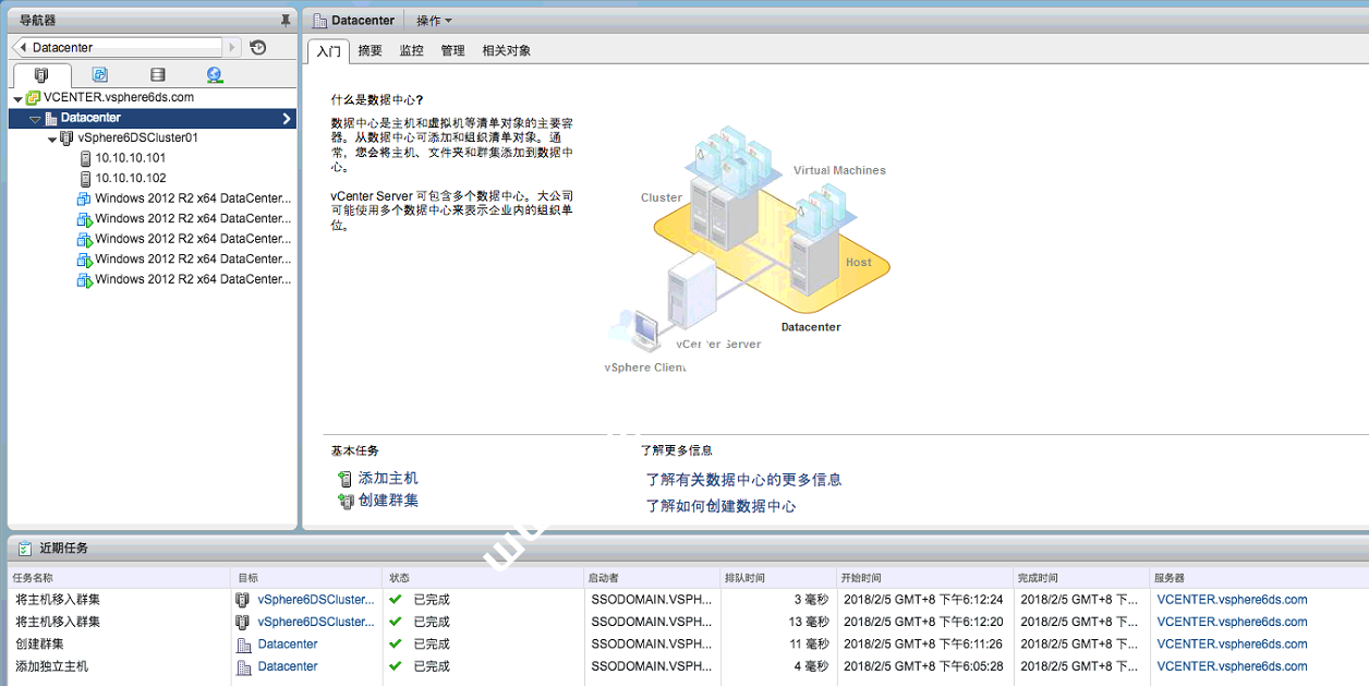 配置数据中心:Windows server 2012 R2 双AD域安装vCenter 6(独立数据库)之:配置数据中心(添加ESXi主机、新建数据中心\集群等)