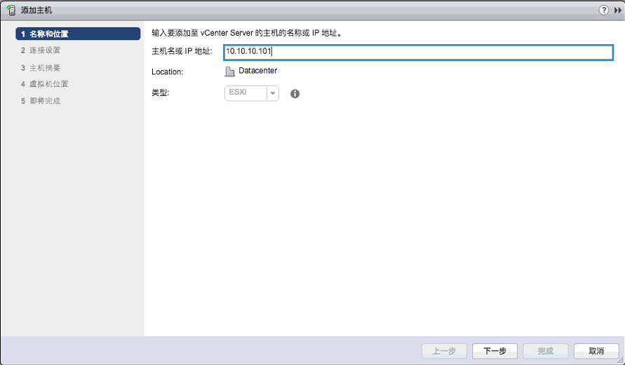 输入第一台主机名:esxi01.vsphere6.local,如下
