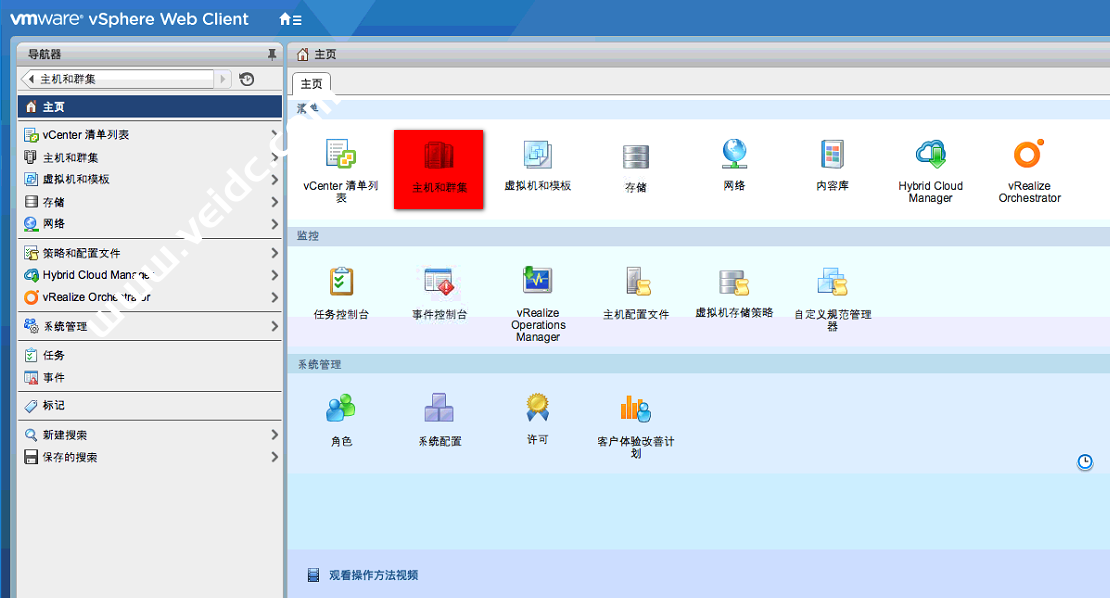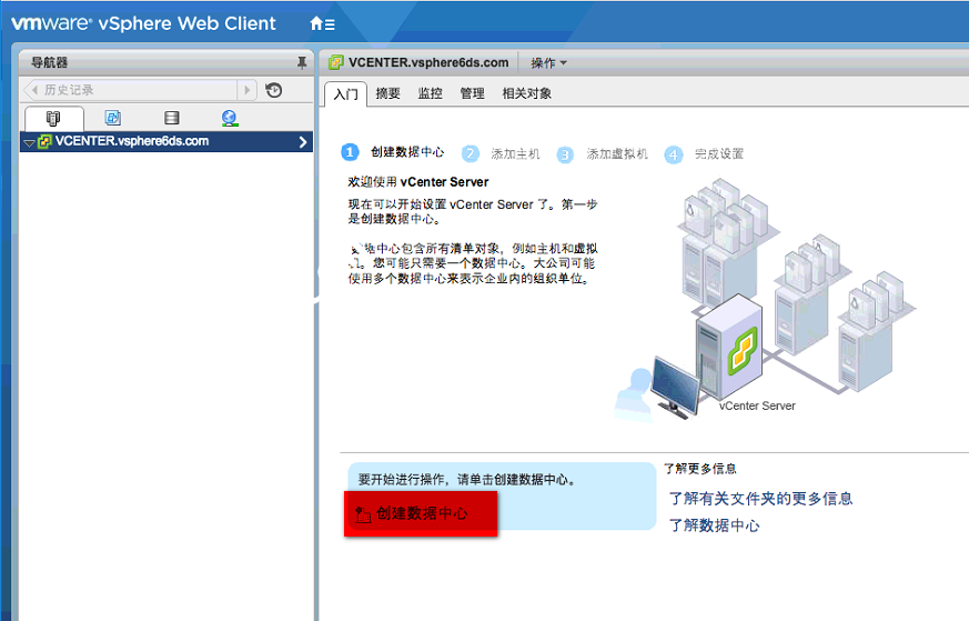 通过vSphere Web Client登陆VC管理界面,准备创建数据中心,如下图