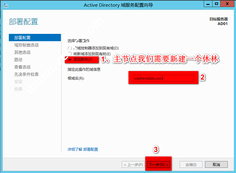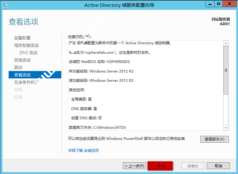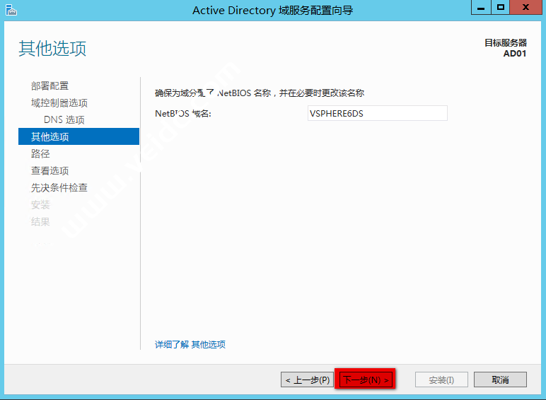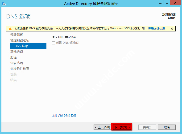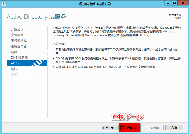 “Active Directory 域服务配置向导” 页面直接下一步