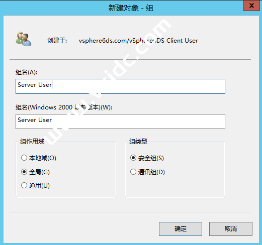 设置组名,组作用域默认,也可以根据自己的需要更改,点击“确定”