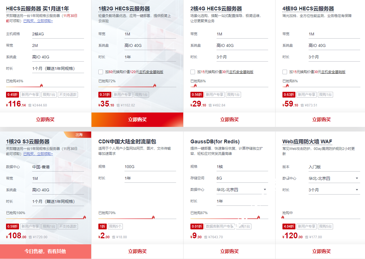 每天上午9点限量开抢,优惠仅限1单,抢完即止!华为云,11·11实惠更使用·11都如愿双11优惠促销活动主会场,点击直达>>