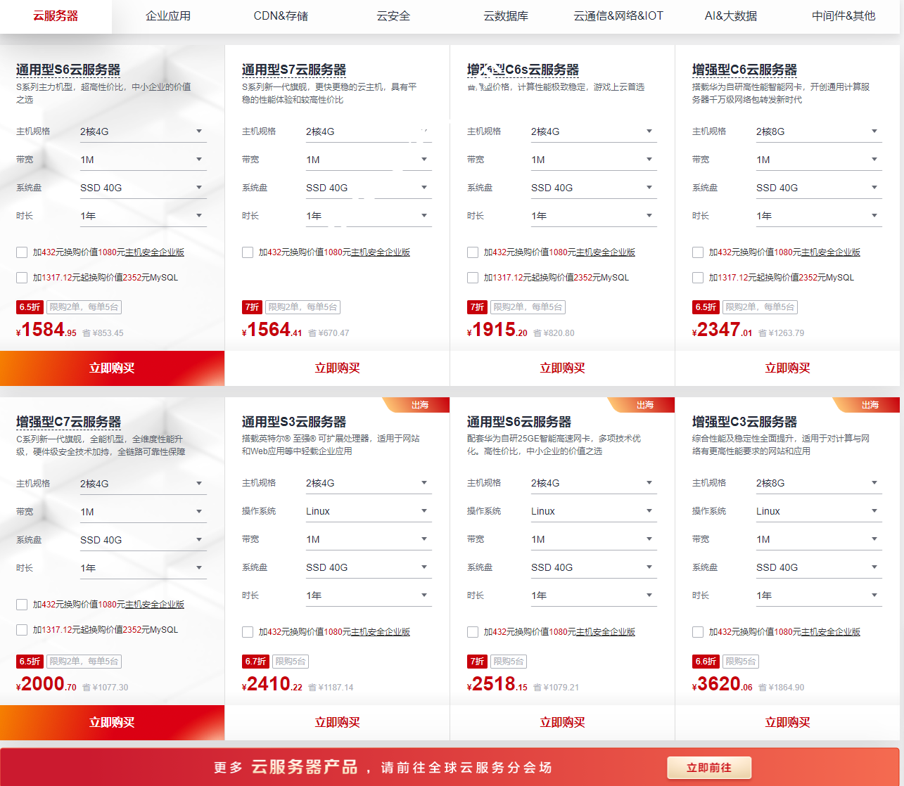 优惠仅限一单!购买C6系列、C7、M系列云服务器有更多好礼相赠,华为云,11·11实惠更使用·11都如愿双11优惠促销活动主会场,点击直达>>