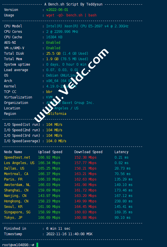 JustHost近2个月不断新增机房,但苦于小编太忙,一直没什么时间测试,目前Justhost在全球9个国家,15个地点提供服务。其VPS特色就是200M-1Gbps不限流量,还有五次免费更换机房和IP的机会,这在业界很少见,价格也挺良心的。美国洛杉矶是继达拉斯后的第二个美国机房,也是中国用户非常熟悉和使用最多的机房,本文我们就来测评一下新增的美国洛杉矶数据中心如何,主要是进行网络方面的测试,测试机器为200Mbps不限流量机型。