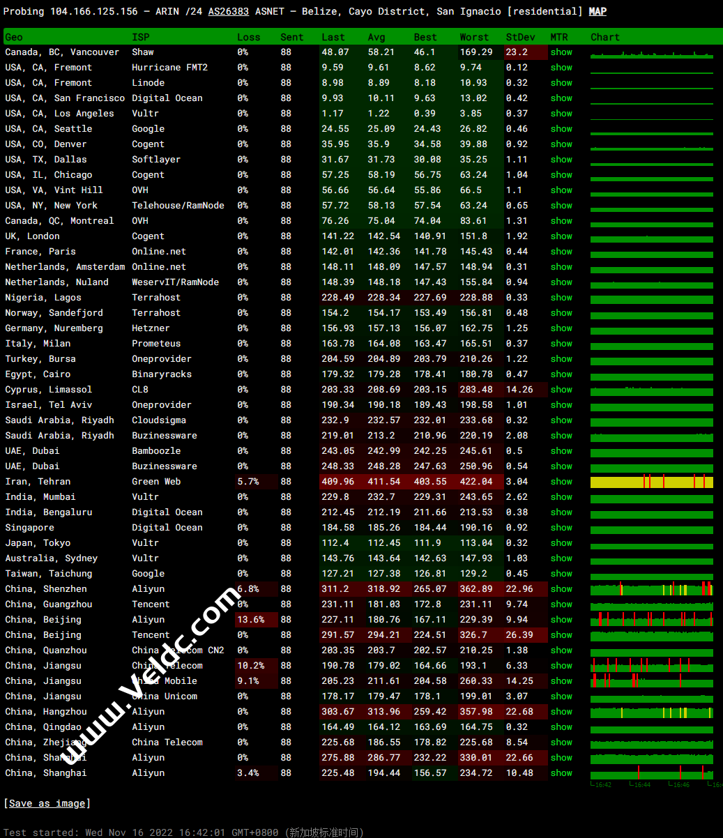 全球PING及丢包率测试: