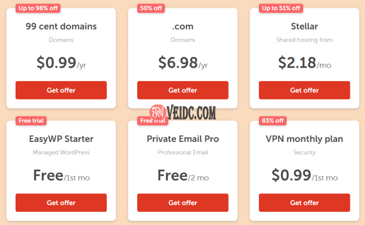 从上面我们可以看到域名的优惠力度低至0.99美元,COM域名低至6.98美元,包括还有企业邮局、虚拟主机、SSL等。如果我们有准备注册域名的可以先将准备注册的域名准备好,然后时间到再注册,包括有需要转移域名的也可以先解锁和获取转移码。