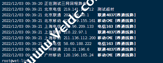 一键检测VPS回程国内三网路由