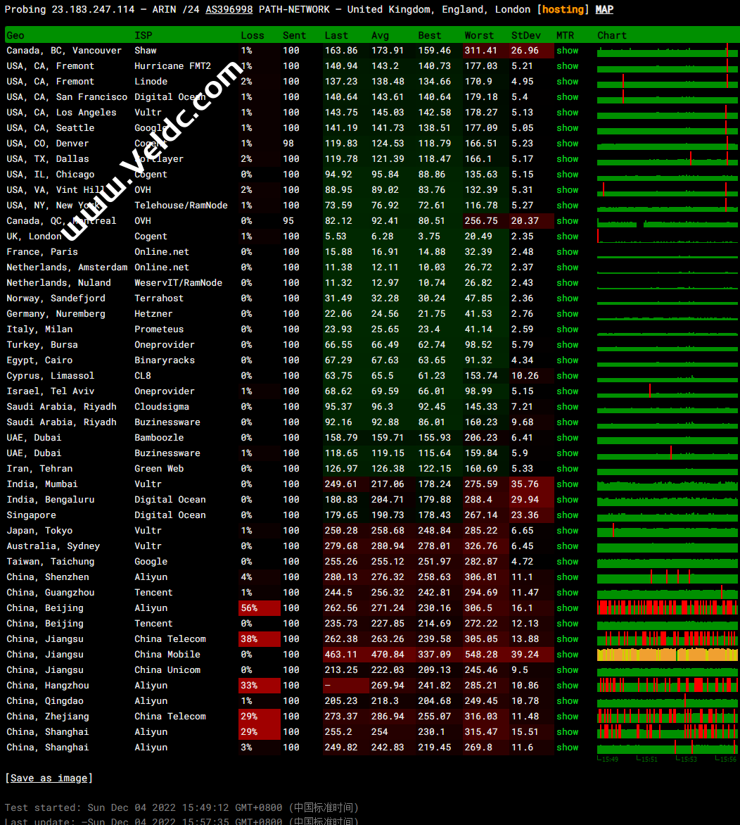 全球PING及丢包率测试: