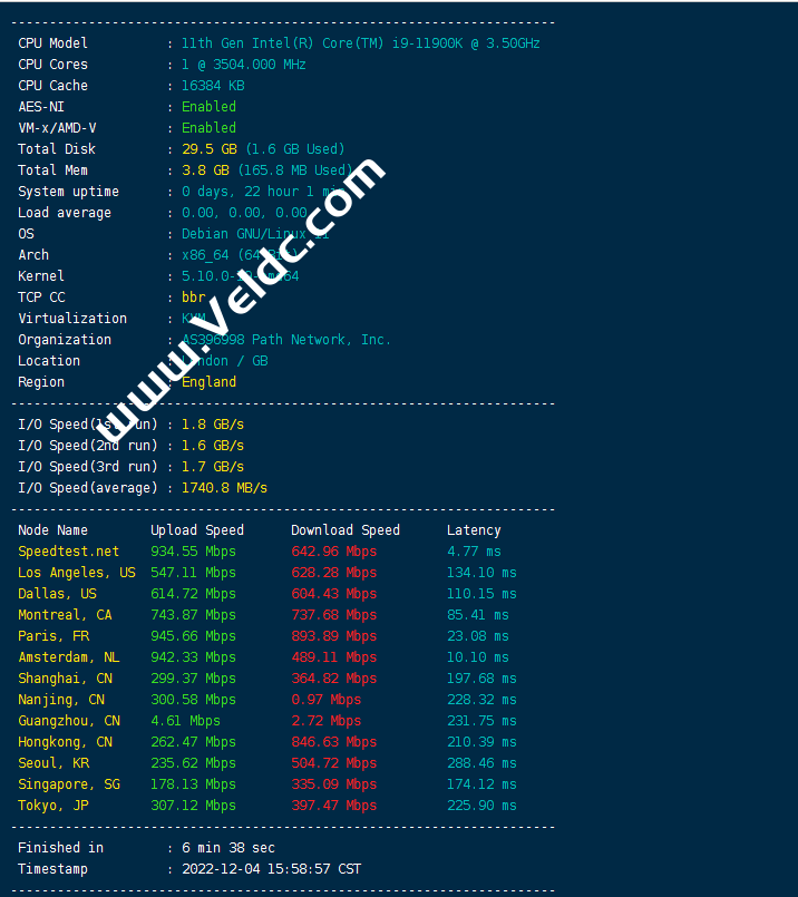 前几天我们介绍了EUGameHost,这是一家成立于2017年的英国服务商,主要提供游戏服务器,独立服务器等。数据中心有美国达拉斯,德国,新加坡,英国等,最大特色是由 Path.net 提供的12Tbps DDoS 保护,付款支持信用卡和Paypal。本文我们就来测评一下其英国机房VPS,看看实际测试数据如何。