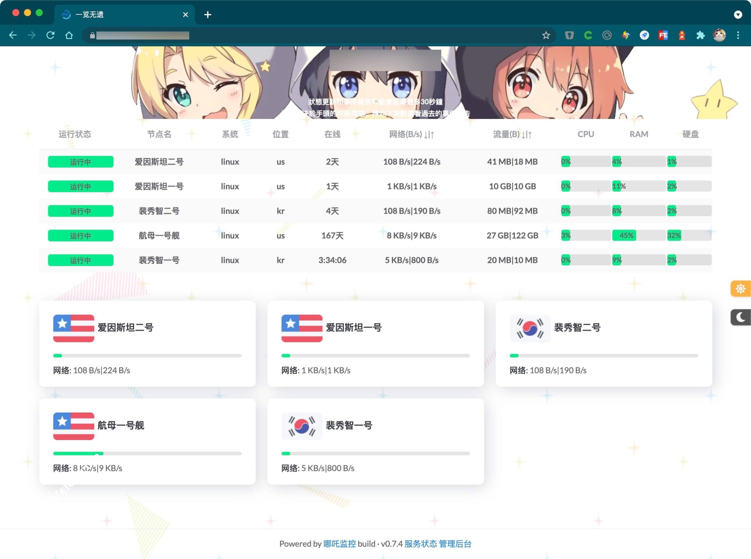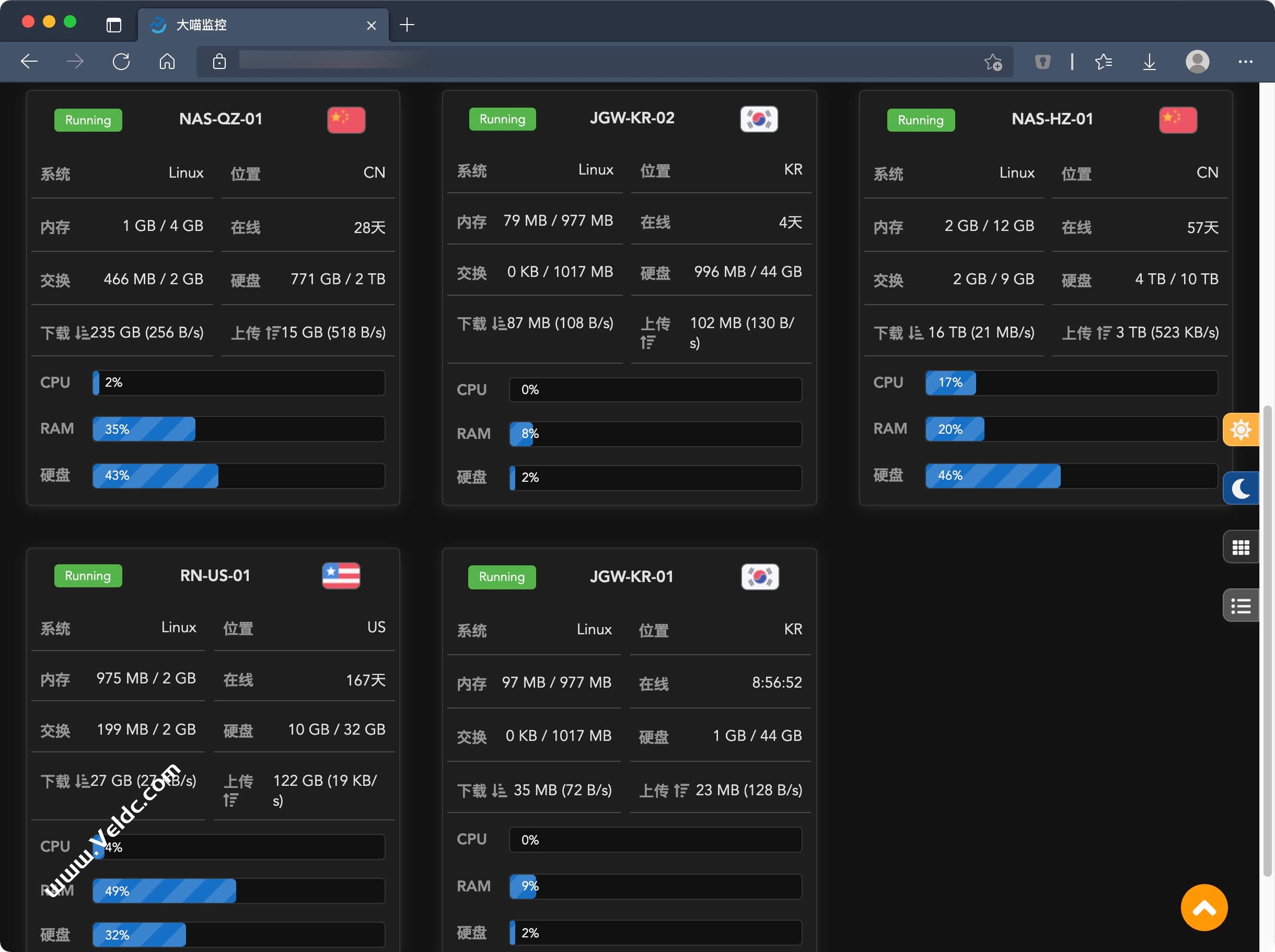 哪吒监控:一个开源、轻量的服务器和网站监控、运维工具。支持同时监控多个服务器的系统状态,支持监控网页、端口、SSL证书状态;支持故障、流量等状态报警,支持多种通知方式(Telegram、邮件、微信等)。支持在线SSH,支持流量循环监控,支持设置定时任务、服务器批量执行任务,支持一键脚本安装面板和监控服务,轻松使用;Linux、Windows、MacOS、OpenWRT等主流系统均受支持