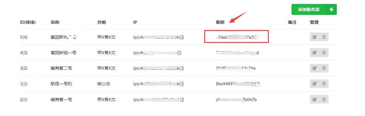点击管理后台 – 添加服务器 – 输入名称确定,添加一个监控机器,并记录下对应的密钥。