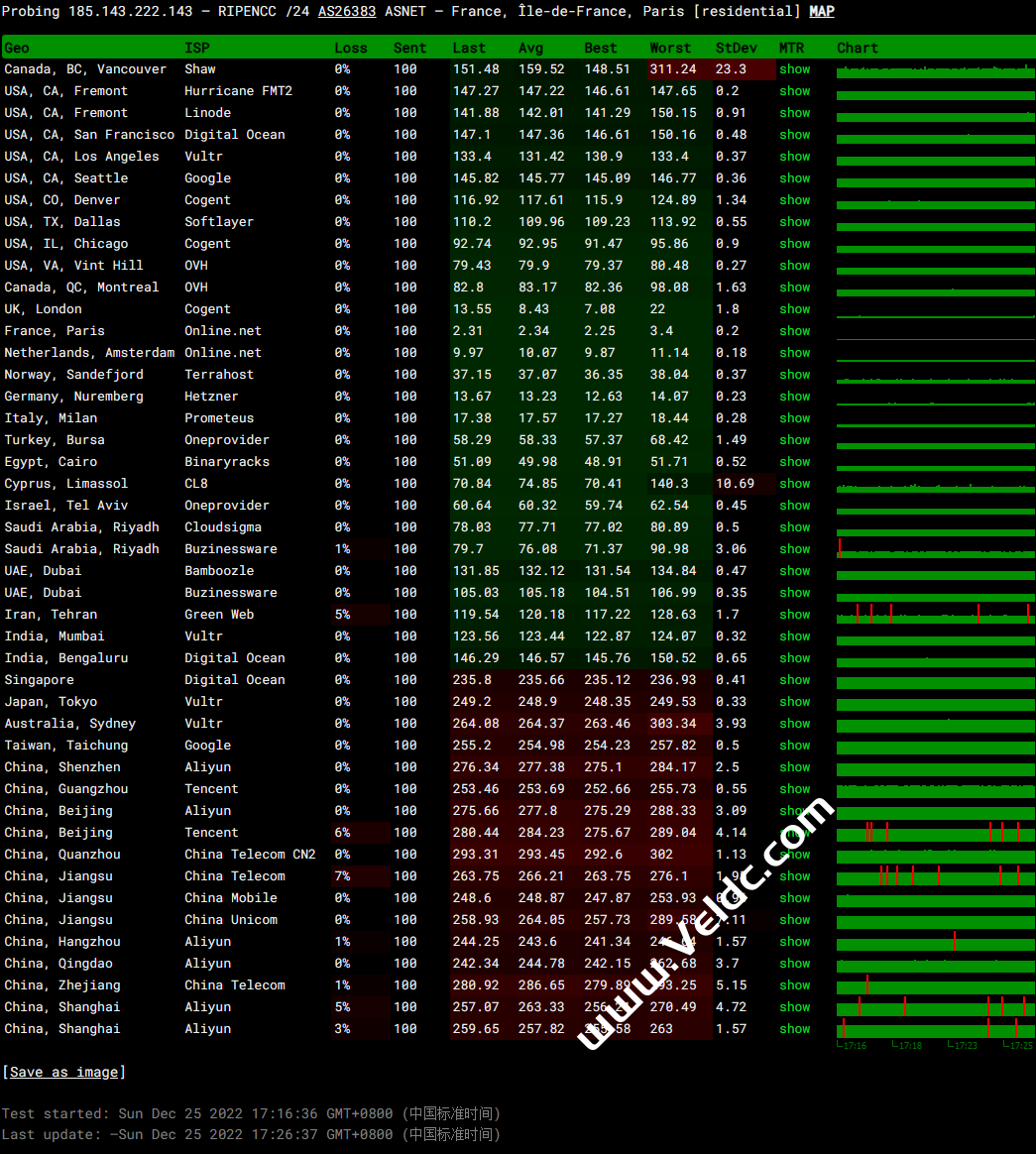 全球PING及丢包率测试: