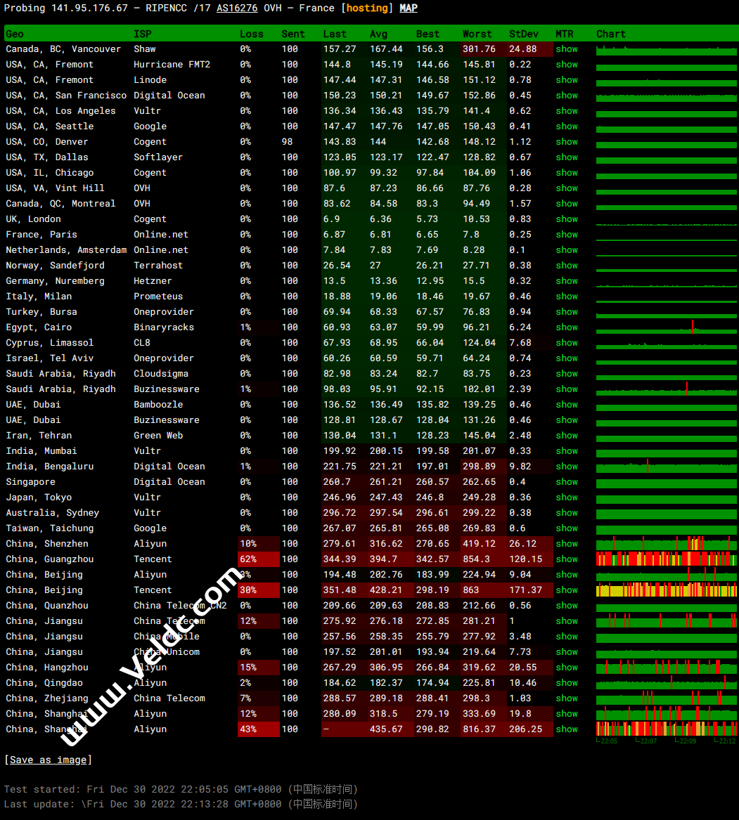 全球PING及丢包率测试: