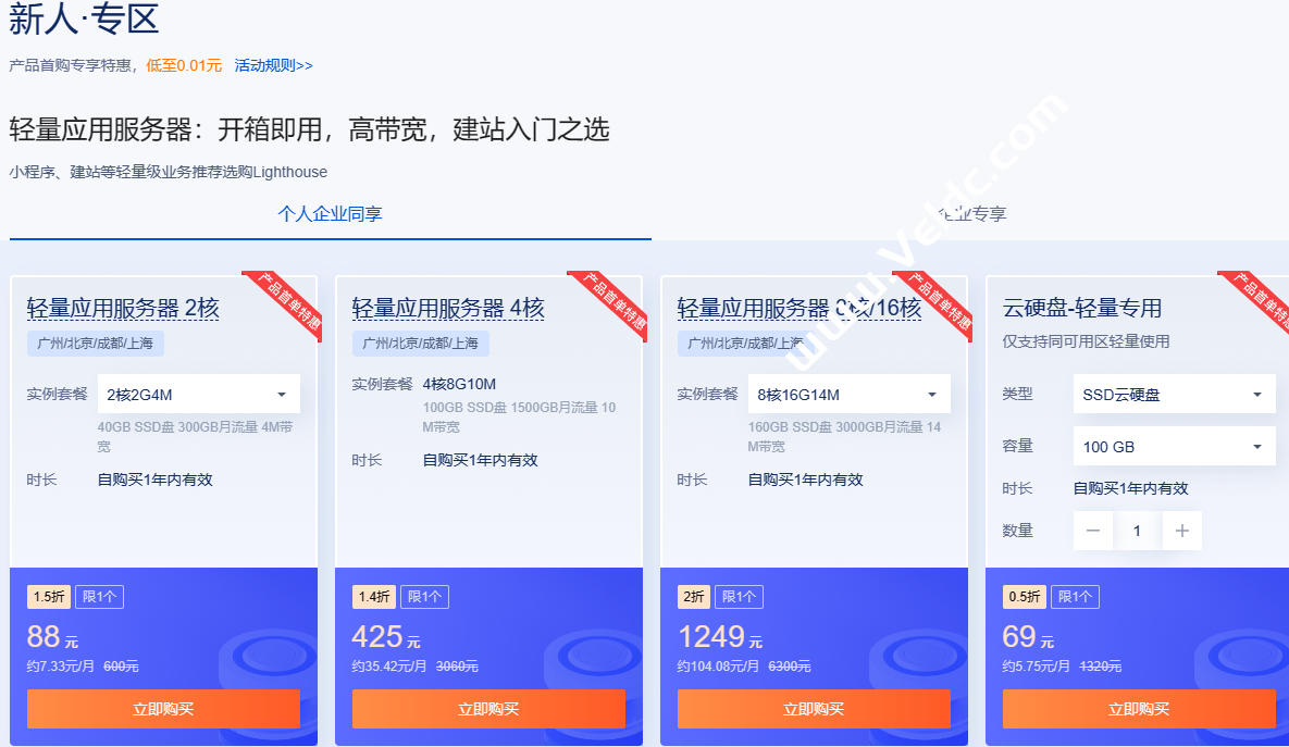 产品首购专享优惠,低至0.01元,轻量应用服务器,开箱即用,高带宽,建站入门之选,点击直达活动主会场>>