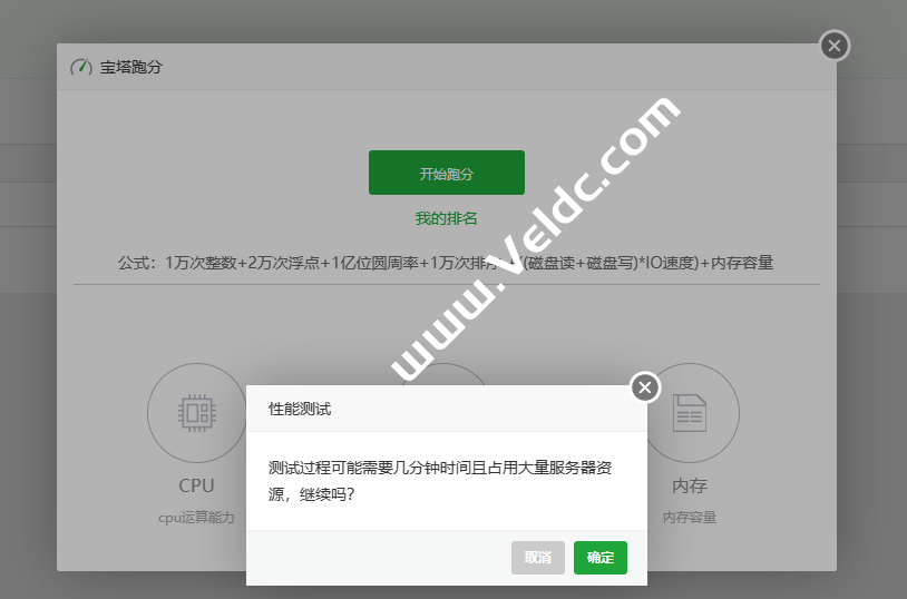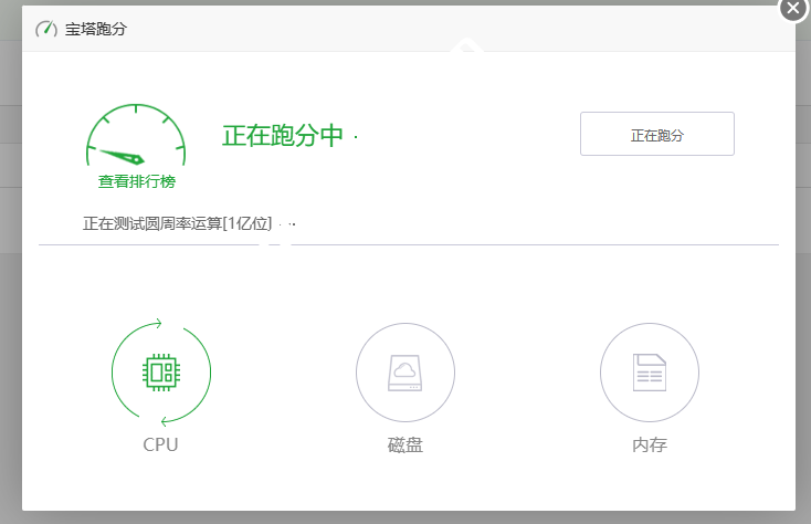 开始跑分(如图):测试当前服务器的性能,点击跑分开始运行计算,跑分过程中,系统会消耗大量资源,可能会影响当前服务器的正常服务。