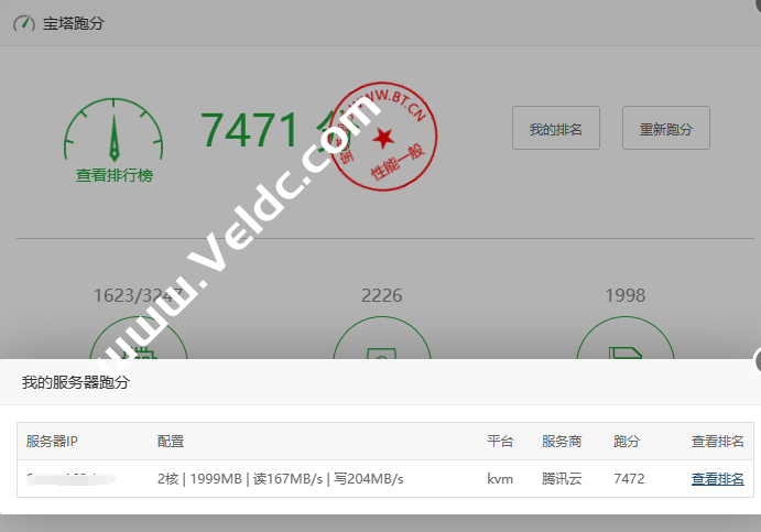 我的排名:显示当前自己的服务器在所有宝塔跑分用户中的排名