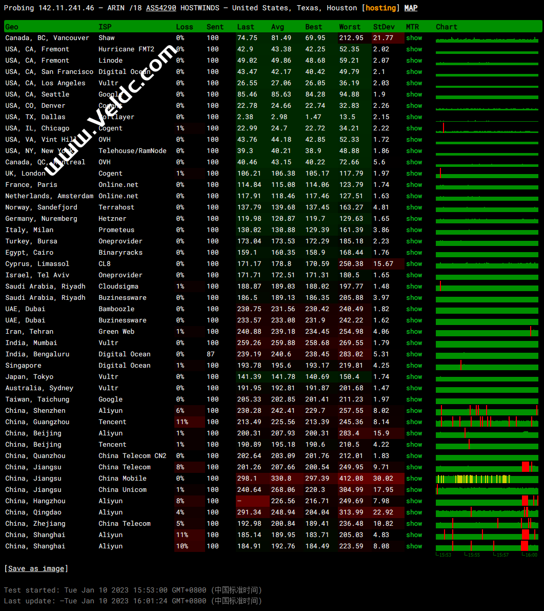 全球PING及丢包率测试: