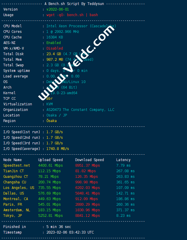 Vultr日本大阪机房云主机测评