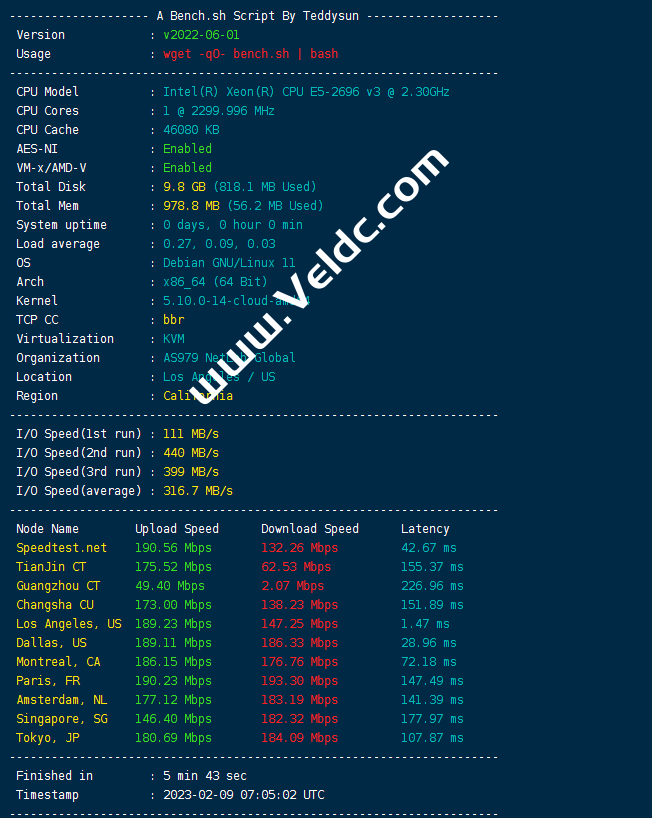 AS9929线路和AS4837线路均属于联通的网络节点,其中AS9929线路属于联通A网,延迟低更稳定。因此AS9929线路也经常被称为联通VIP线路,对标电信的CN2线路。据不少用户反馈AS9929线路的出国的速度和稳定性都不错。不是处于网络高峰期的时候,表现为网络总体负载堵塞程度较低、丢包率抵御1%,速度快。本次我们将测评VMISS的美国洛杉矶9929线路VPS,测试机型仍为Starter,下面来查看详细测评数据分享。