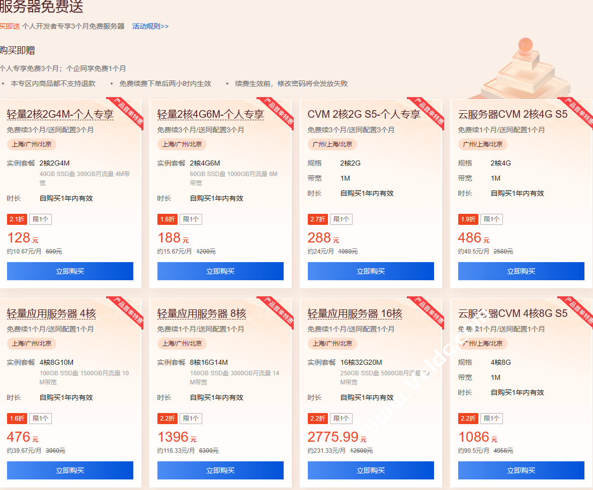 买即送 个人开发者专享3个月免费服务器