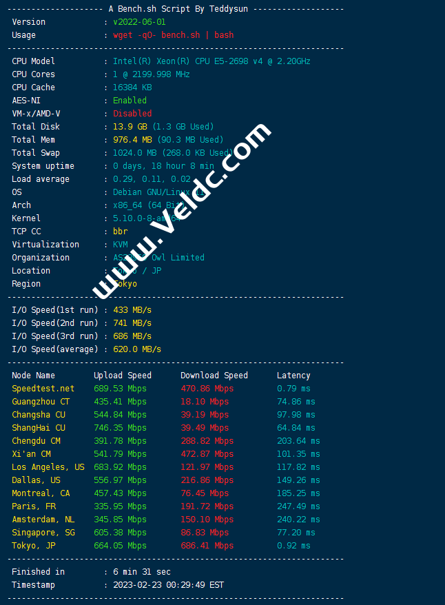 GreenCloudVPS家的VPS很多限制,可能一个脚本都没有跑完就挂了,这也就是为什么很少看到我们发布测评文章的原因。而且这家超开超售也是比较严重的,10Gbps的口子都跑不动,时间已经来到2023,小编又开通了几台看看情况,一台香港NVMe KVM VPS、一台美国洛杉矶10Gbps KVM和一台日本KVM VPS,结果发现只有日本的还算可以,于是今天我们来分享一下日本东京VPS的最新测评。