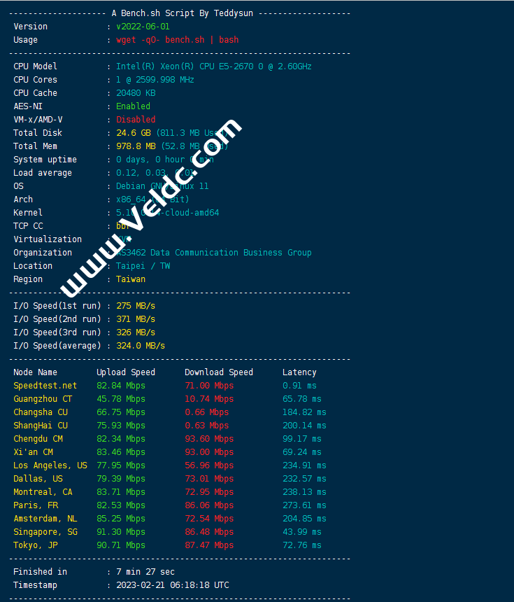 TAKICloud的台湾VPS位于位于中华电信台北机房,原生IP,三网直连。电信和移动表现不错,联通较差。近期TAKICloud对台湾VPS进行了一些调整,目前为100Mbps共享带宽,月付720新台币起,早在去年我们测评过商家的台湾VPS,现在调整后我们将再次进行一个终合测评,看看具体表现如何。