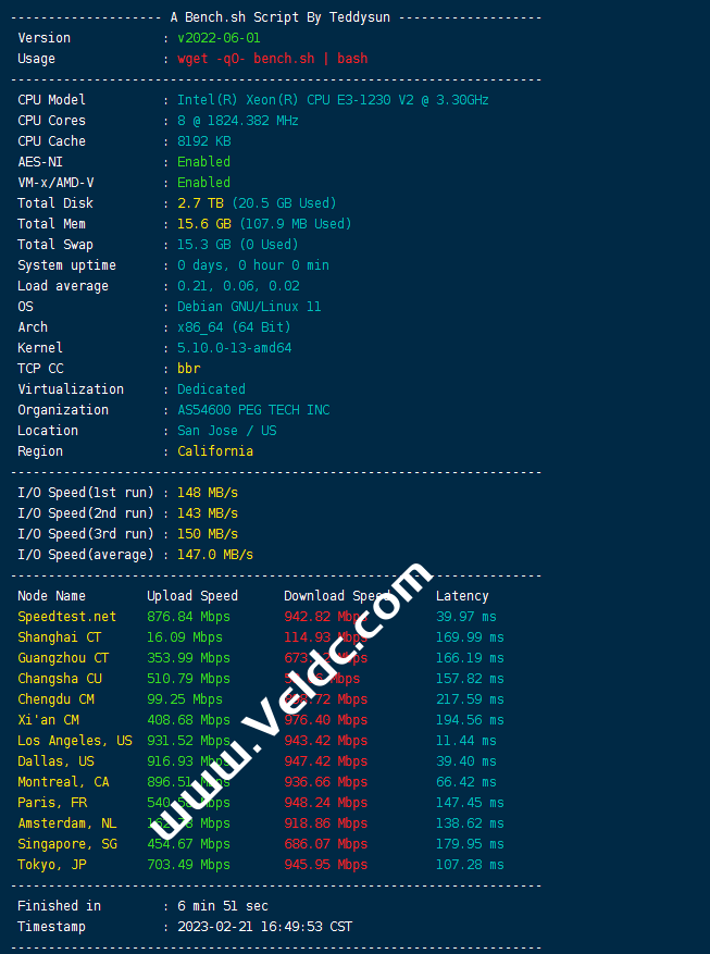 RAKsmart的30美金促销美国服务器最近很火爆,价格也确实够便宜,小编看到很多用户购买,真有那么好用吗?这款促销服务器使用I3-2120或E3-1230 CPU,机房位于圣何塞,这个地区的机器就算是普通直连中国大陆延迟也还过得去,RAKsmart的这款美国服务器默认为100M大陆优化线路,不限制流量,自带10Gbps DDoS防御,可免费开CC防御!高防支持定制,自由选择大小!本文我们就来分享一下该机器的测评数据,测试机器为Intel(R) Xeon(R) CPU E3-1230 V2/16G内存/1TB硬盘。