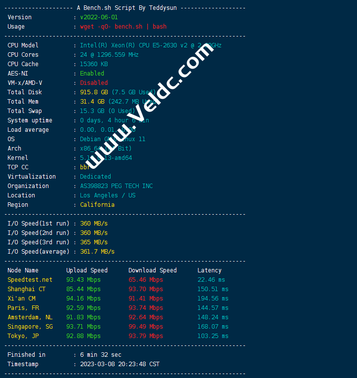 | 圣何塞 | E5-2620 | 32G | 1T HDD | 100M | $69 | 直达 |