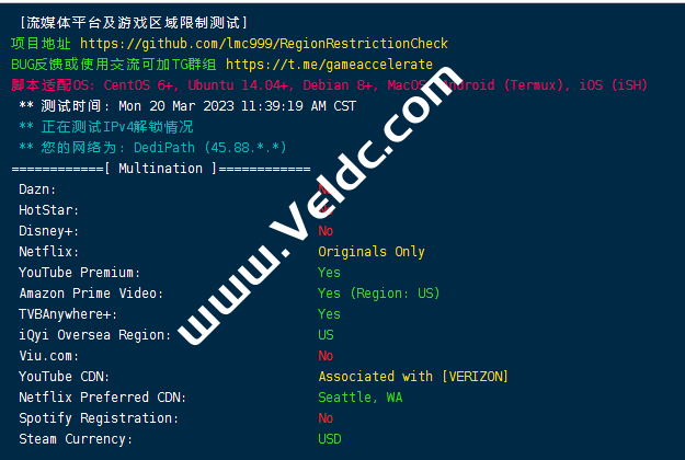 DesiVPS近日发布了几款洛杉矶1Gbps不限流量VPS促销套餐,最低年付仅18.99美元起,支持使用支付宝和PayPal付款。那么这款VPS如何呢,本文将分享DesiVPS洛杉矶1Gbps不限流量VPS最新测评,包括站长全国PING、丢包率、性能和带宽测试、路由去程和回程、流媒体解锁等。
