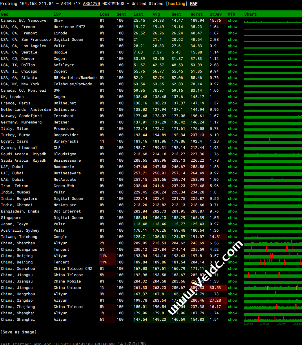 全球PING及丢包率测试: