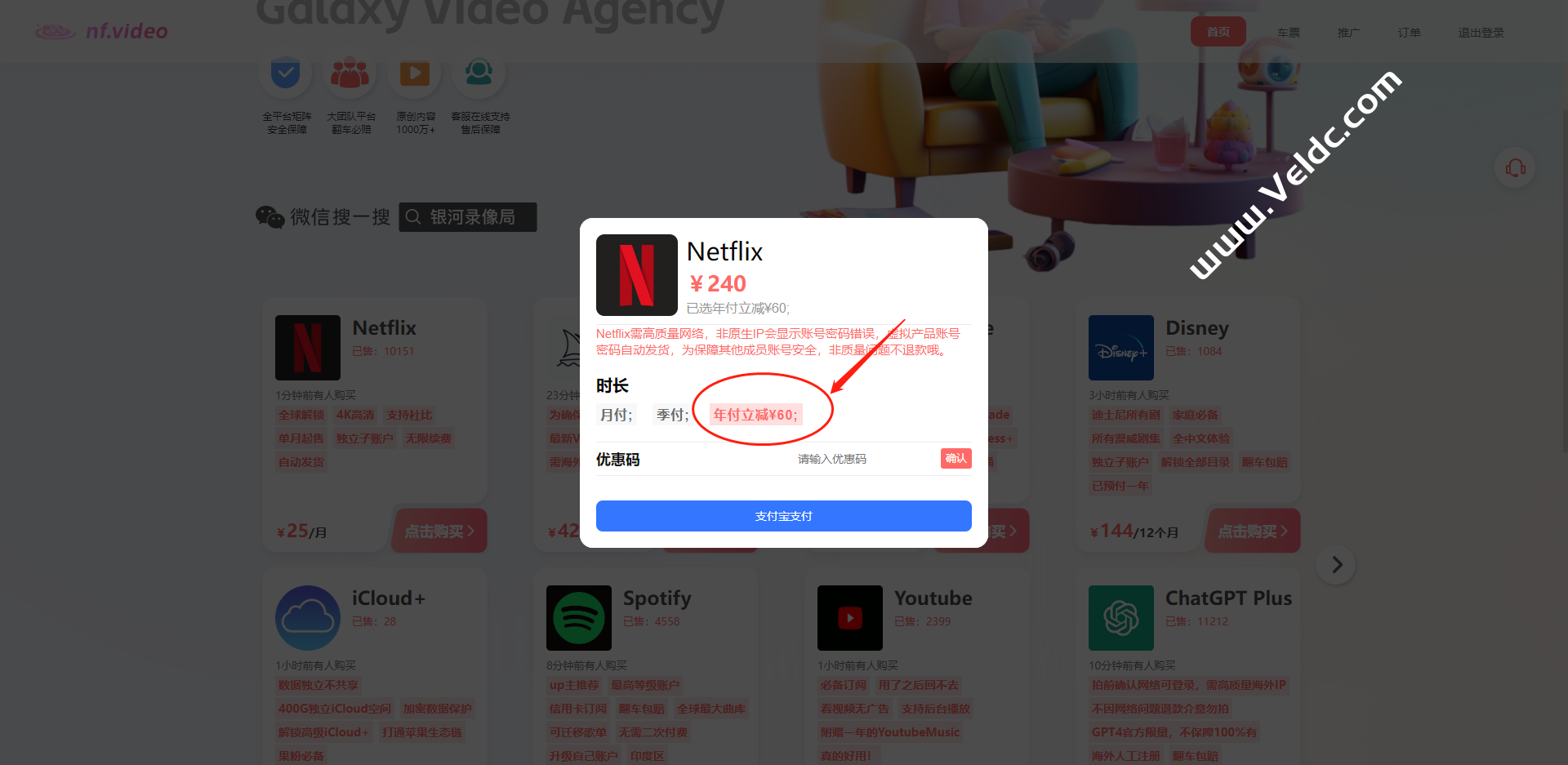 5、这里以购买年付Netflix高级账号为例教大家如何购买挑选