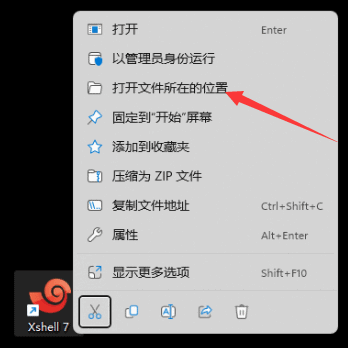1、找到 Xshell 7 图标,右键 – 打开文件所在的位置 – 找到 Xshell.exe(建议备份该执行文件)