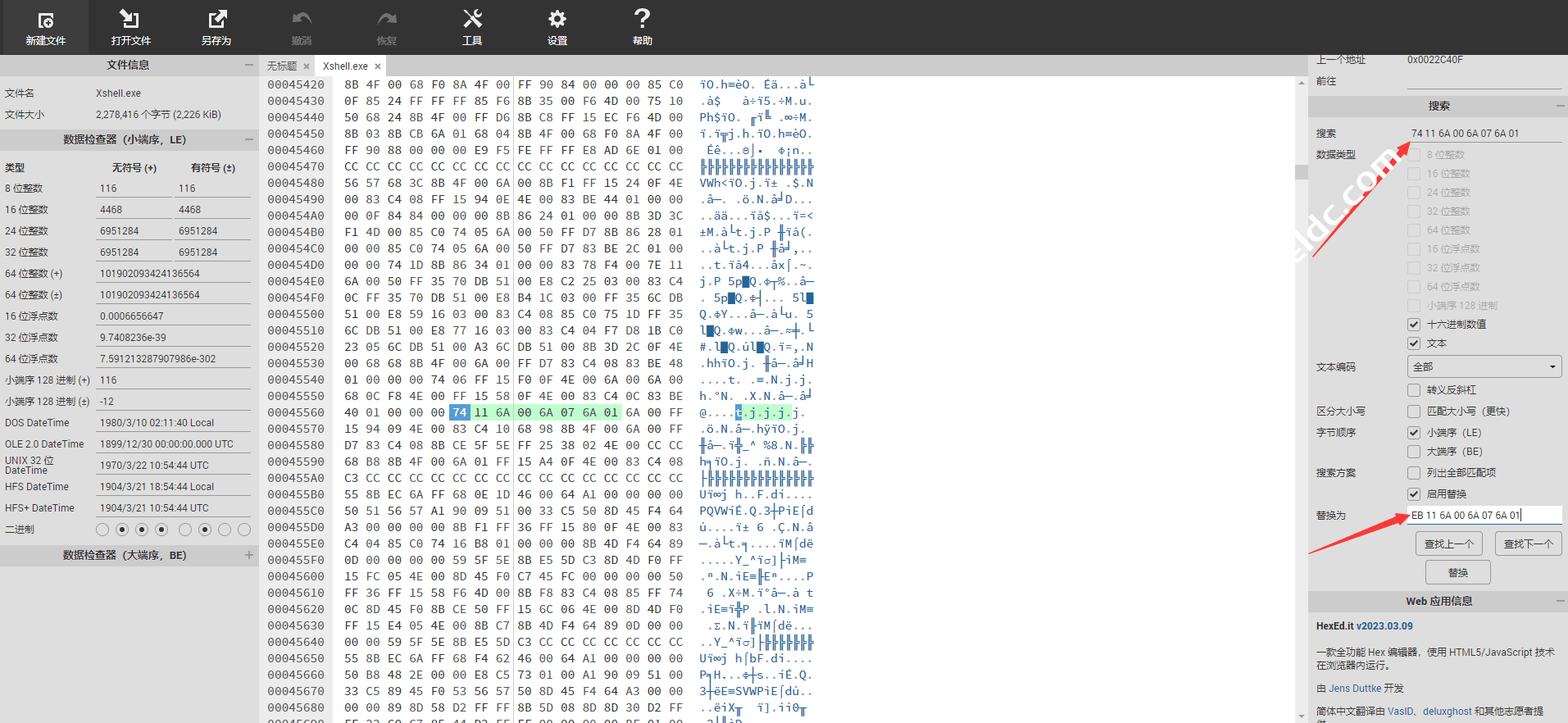 4、参照上面同样的步骤对 Xftp.exe 文件按以下代码进行修改完成保存即可。
