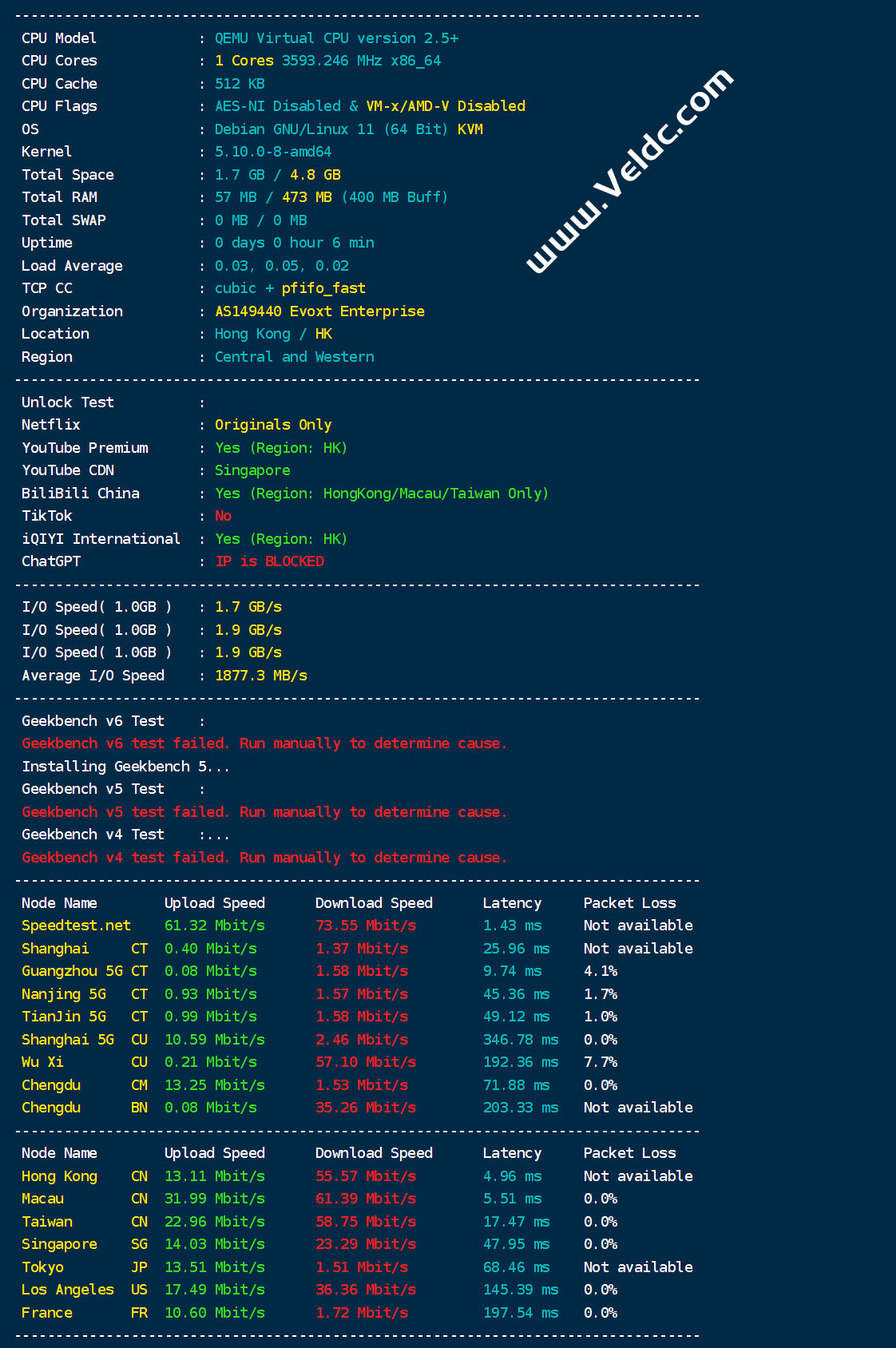 Evoxt在今年二月份就新增了中国香港VPS服务器,100M端口,月流量500GB起,采用NVMe存储,性能非常不错,可以解锁部分流媒体,月付2.99美元起,支持PayPal,信用卡、加密货币和支付宝付款。本来商家还想增加CMI带宽,可生不逢时,恰遇涨价,近期网络调整的可能性应该不大,不过目前的价格性价比也挺不错,有需要便宜香港VPS的同学可以关注一下。