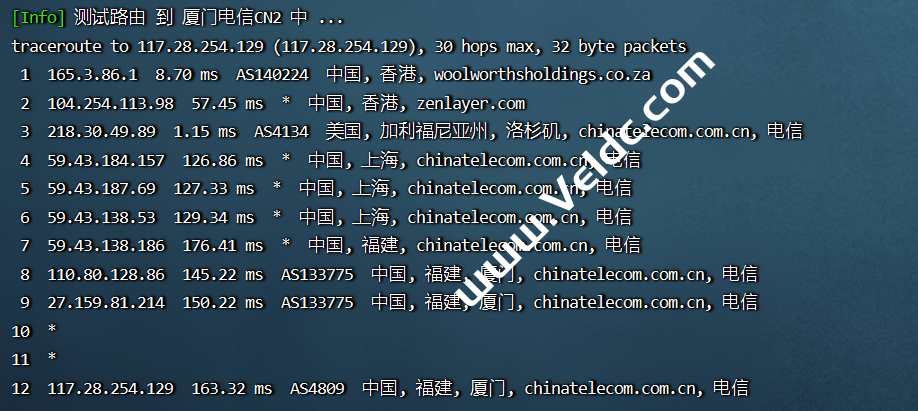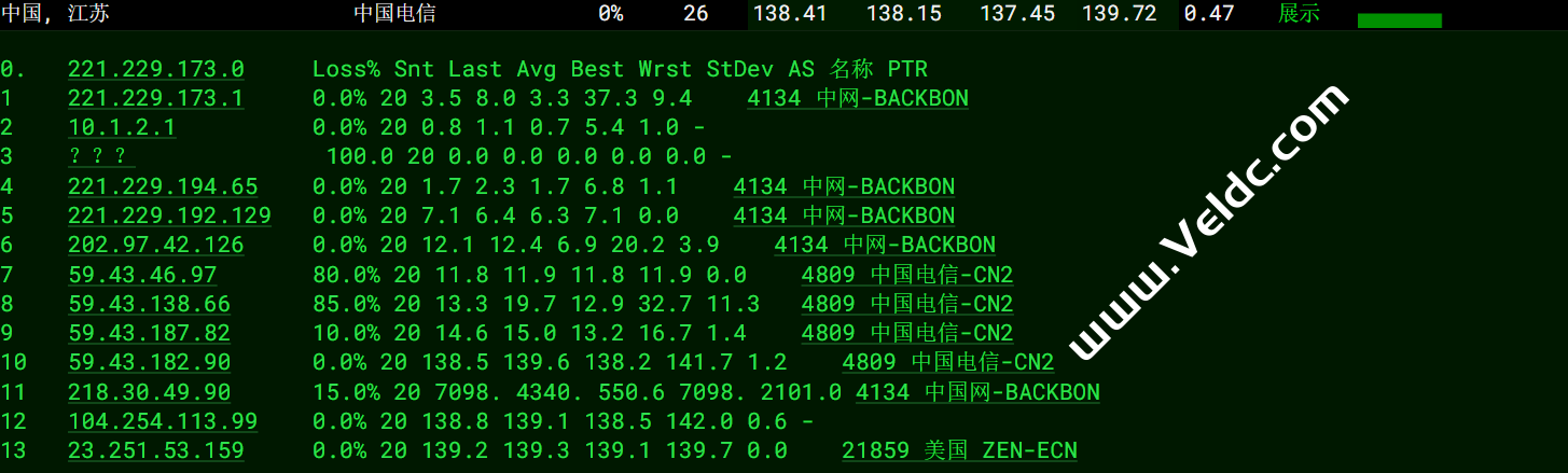 电信回程:cn2 gia线路直连回来。