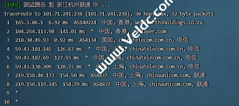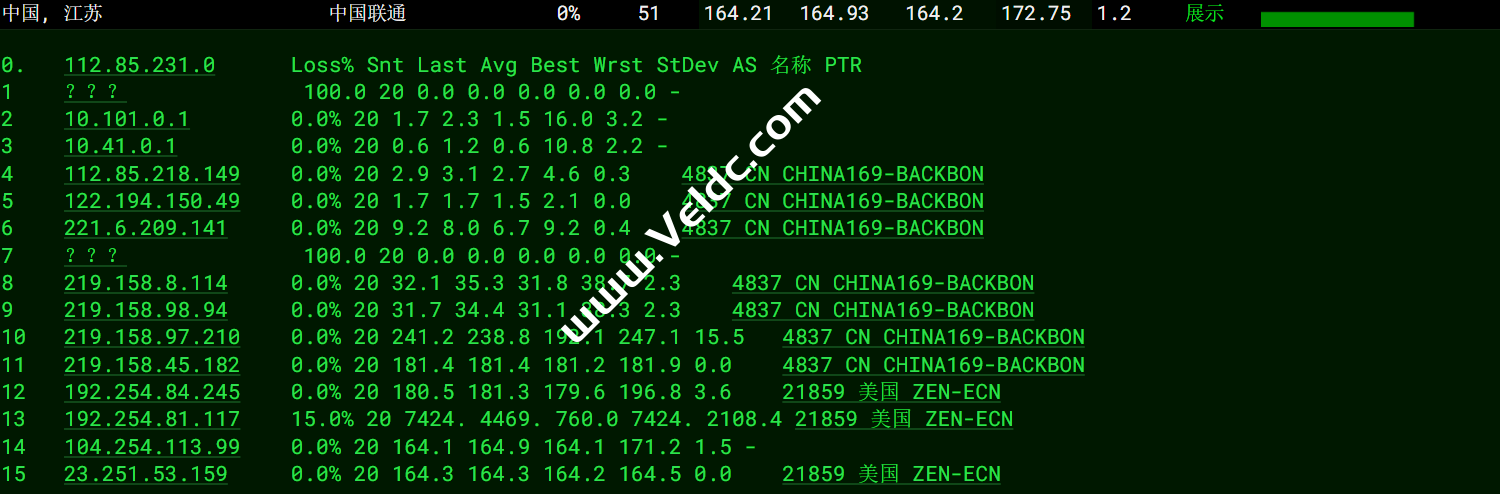 联通去程:走的联通骨干线路直连美国。