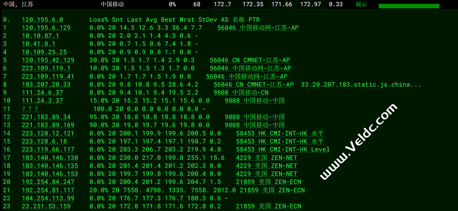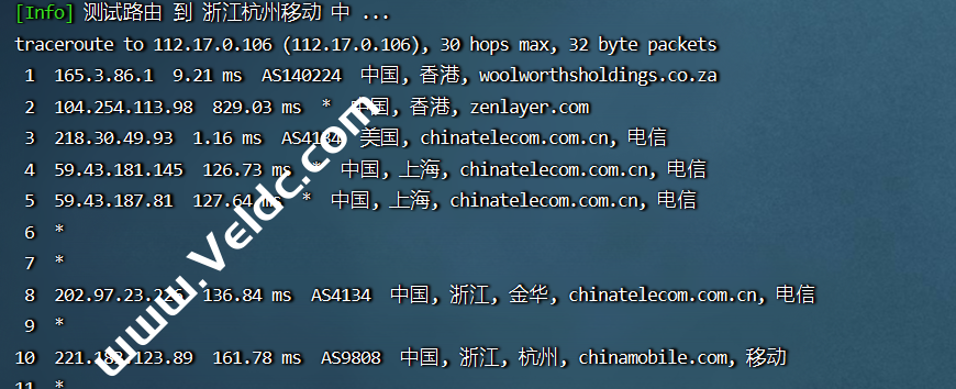 移动去程:移动cmi线路直连美国。