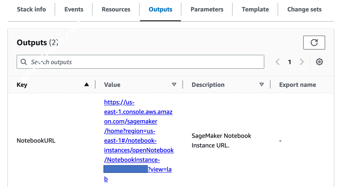 12. 下面介绍如何用自己的图片进行训练。在 Cloudfomation 的输出中,点击 NotebookURL 链接。