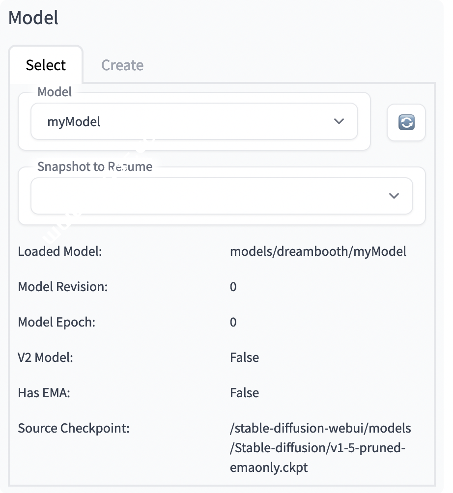 1. 首先要创建一个模型。导航到 DreamBooth ⻚面。