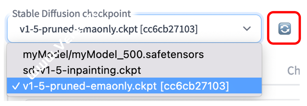 10. 训练完成后,点击刷新按钮,模型列表中将出现刚训练好的模型,选择新训练的模型。
