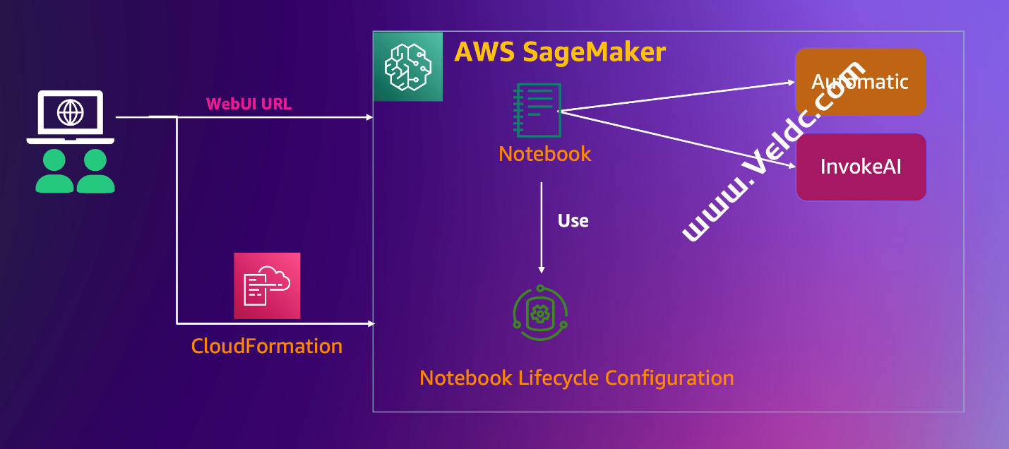 欢迎大家观看《生化妙笔信手来》系列博客,本文主要介绍如何使用 Amazon SageMaker Notebook 机器学习服务轻松托管 Stable Diffusion WebUI,一键部署开箱即用的 AIGC 图片方向轻量级应用。通过 Amazon CloudFormation 基础设施即代码的服务,实现底层环境、AI 模型和前端 Stable Diffusion WebUI 的快速部署,帮助用户在 15~20 分钟部署一套文生图、图生图的 AI 应用。此方案适合企业级客户对 AIGC 图片方向做前期调研和快速验证、小型团队快速搭建轻量级 AI 应用的业务场景。