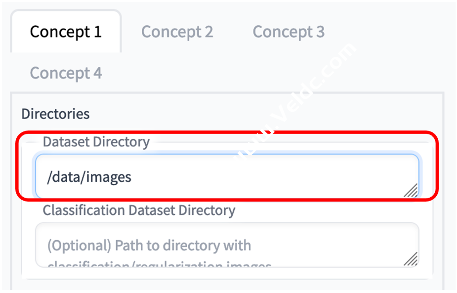 6. 点击 Concepts 选项卡,在 Dataset Directory 输入实例图片所在的目录。我们事先准备了示例图片 在/data/images 中,读者也可以把自己的图像文件放在该目录中。
